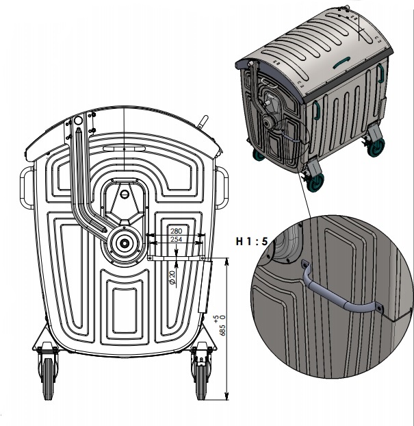 Containere din oțel pentru colectarea deșeurilor menajere solide cu capac