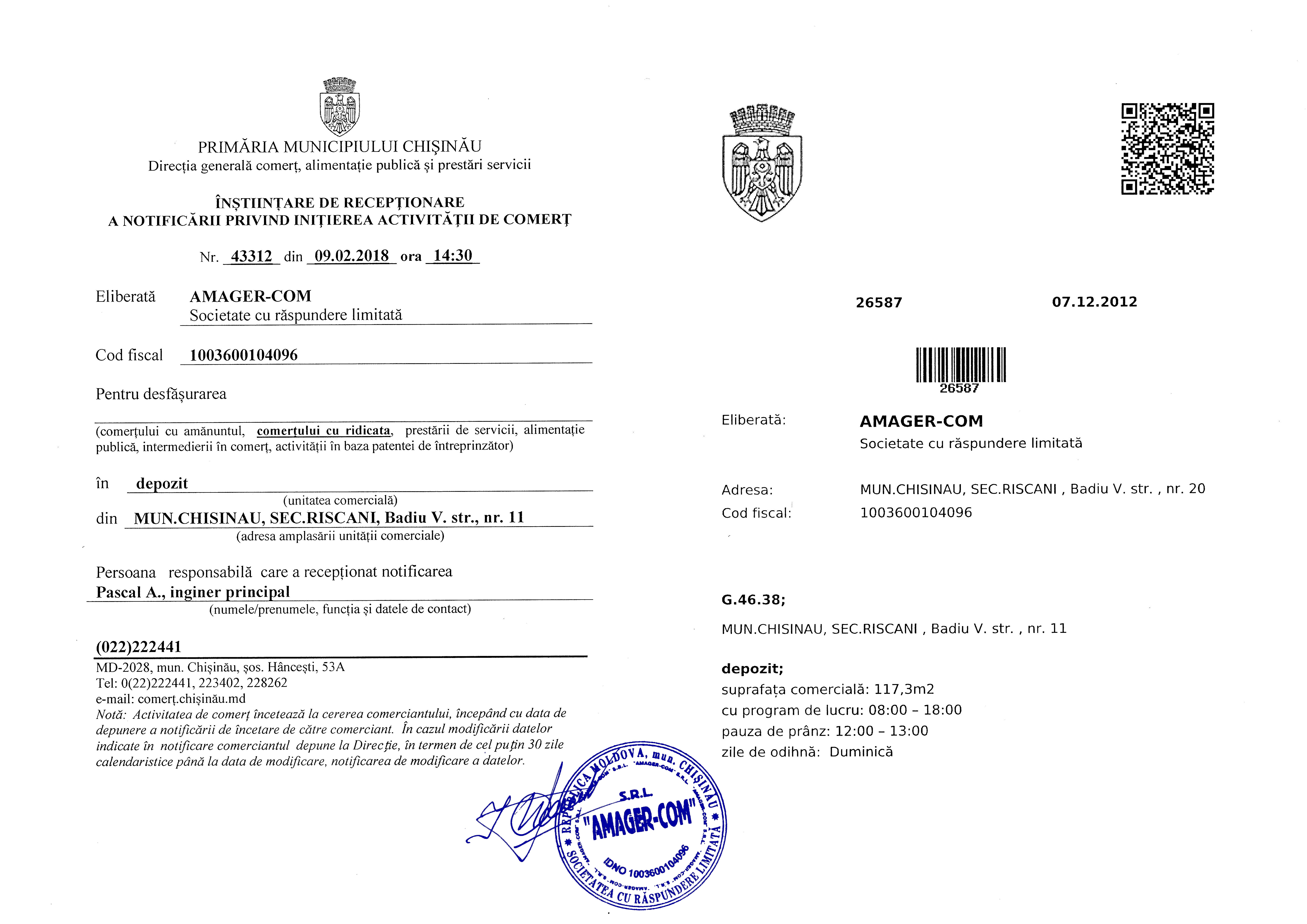 | 10/01/2019 11:00 | autorizatie sanitara.pdf | Doc. de calificare | Produse lectate | | Romana |