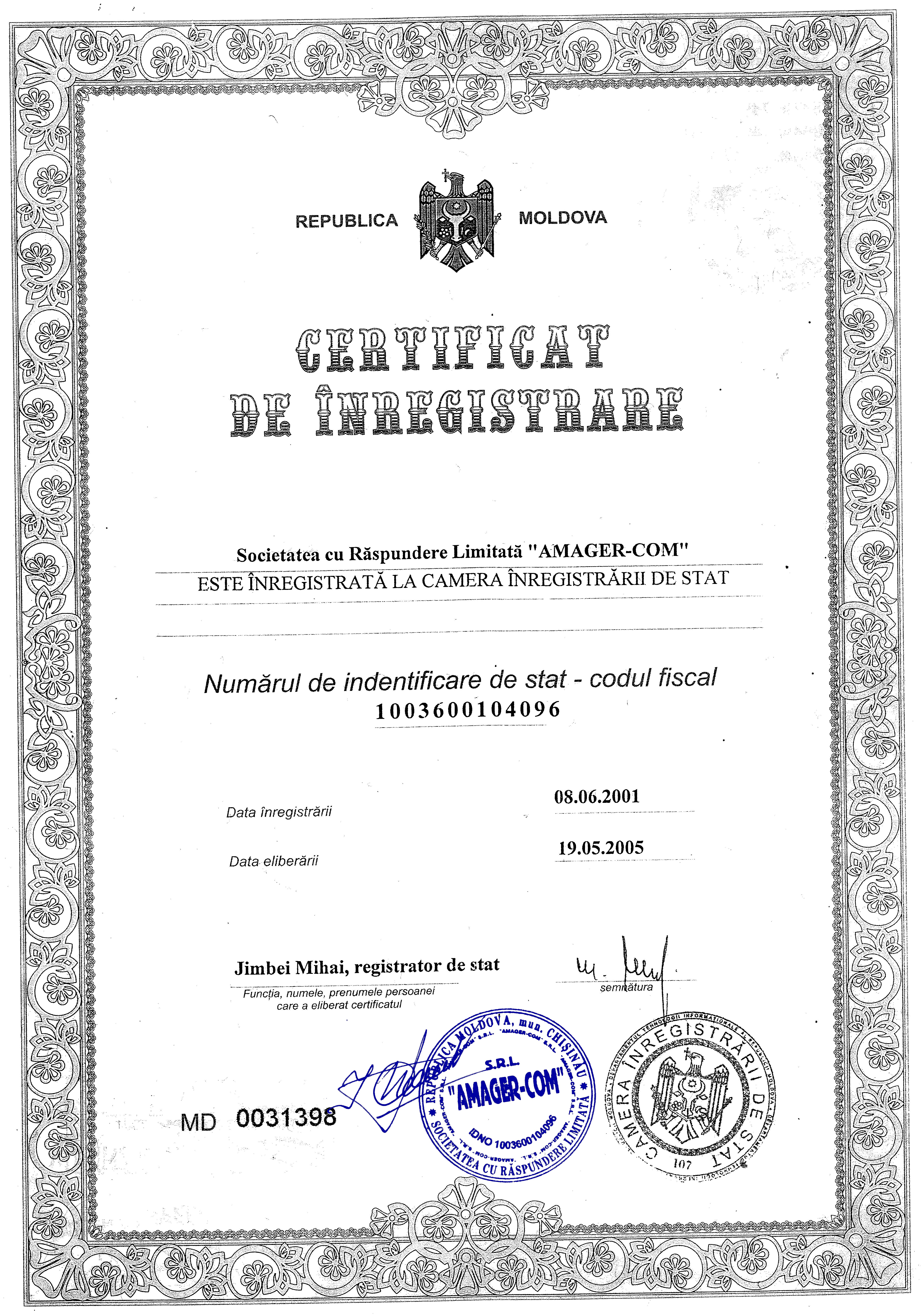 | 10/01/2019 11:00 | 01. certificat de inregistrare.jpg | Doc. de calificare | Produse lectate | | Romana |