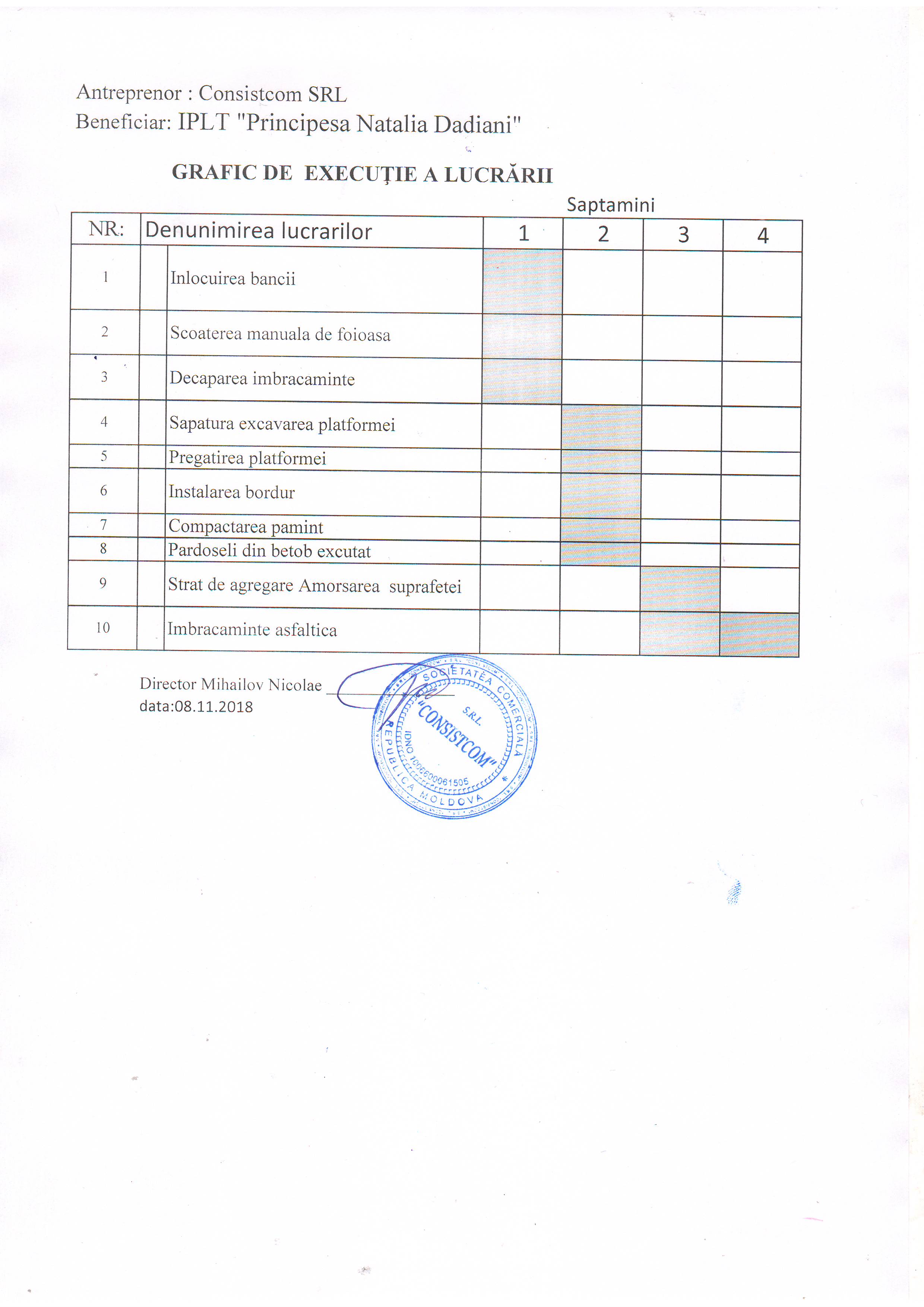| 08/11/2018 14:00 | сканировать10004.jpg | Garanții | Asfaltarea suprafețelor și executarea a două piste de alergare | Graficul de executie | Romana |