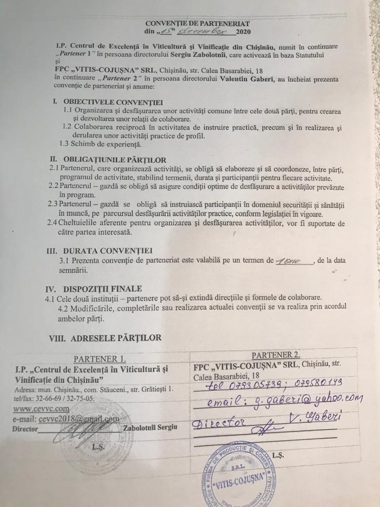 | 18/12/2020 17:00 | acord vitis cojuşna.jpg | Garanții | Servicii de consultanță în domeniul vitivinicol | | Romana |