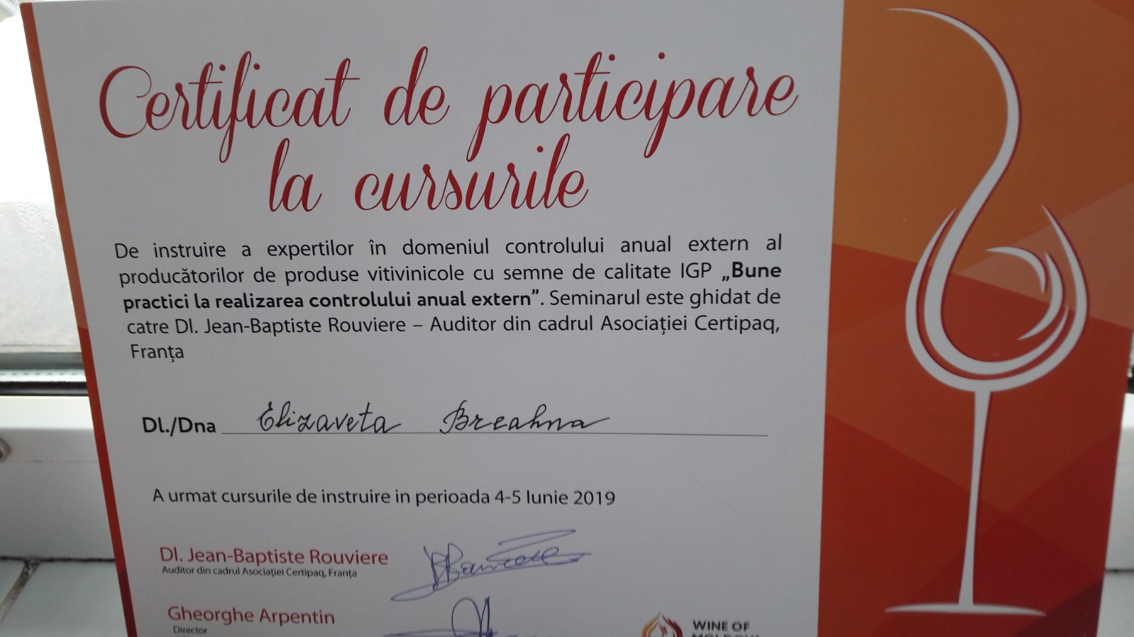 | 18/12/2020 17:00 | breahna certif 2.jpg | Garanții | Servicii de consultanţă în domeniul producerii produselor vitivinicole cu indicații georafice și denumire de origine protejată | | Romana |