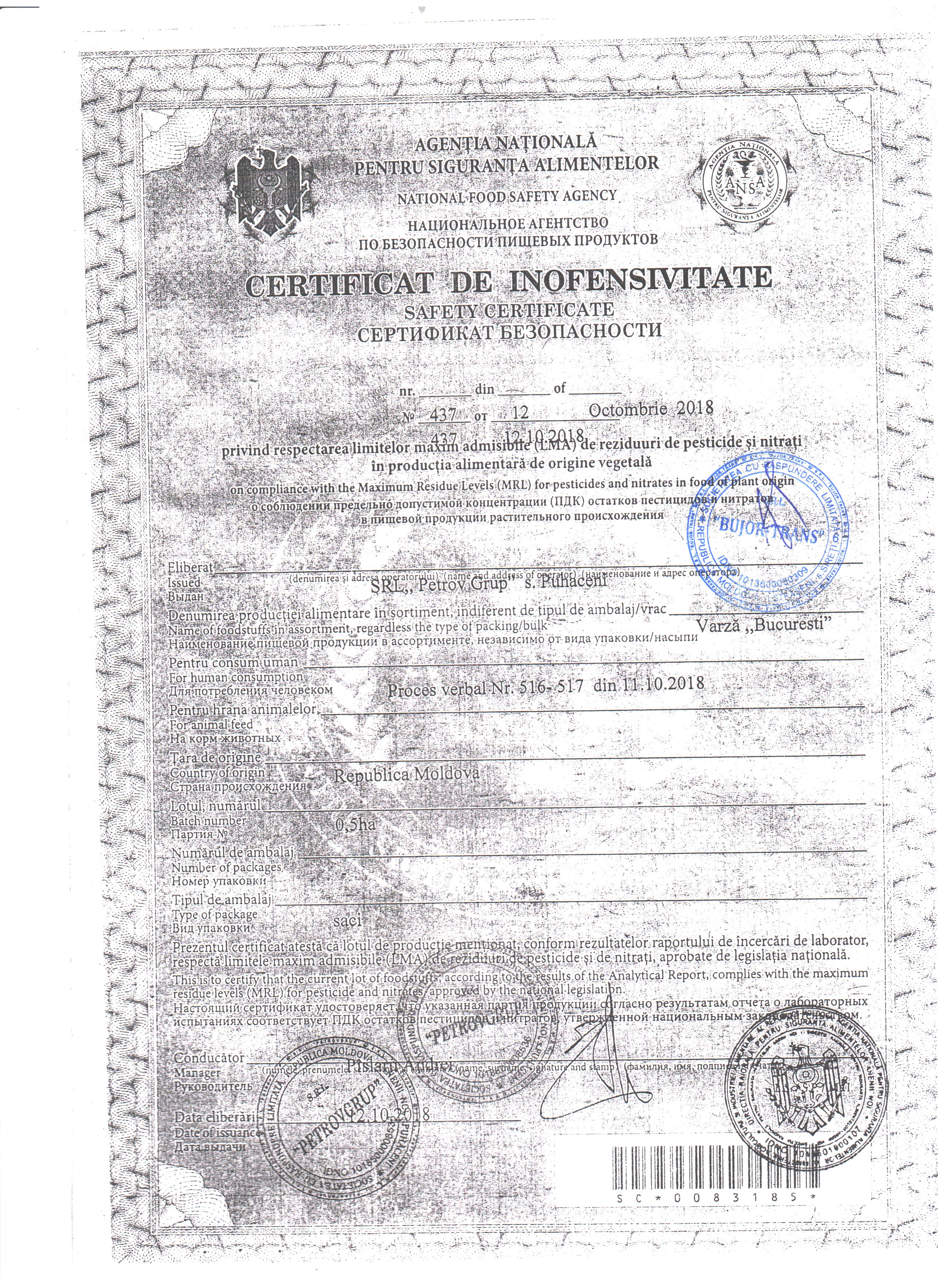 | 19/03/2019 14:46 | CERTIFICAT DE INOFENSIVITATE.jpg | Garanții | Varza proaspata | | Romana |