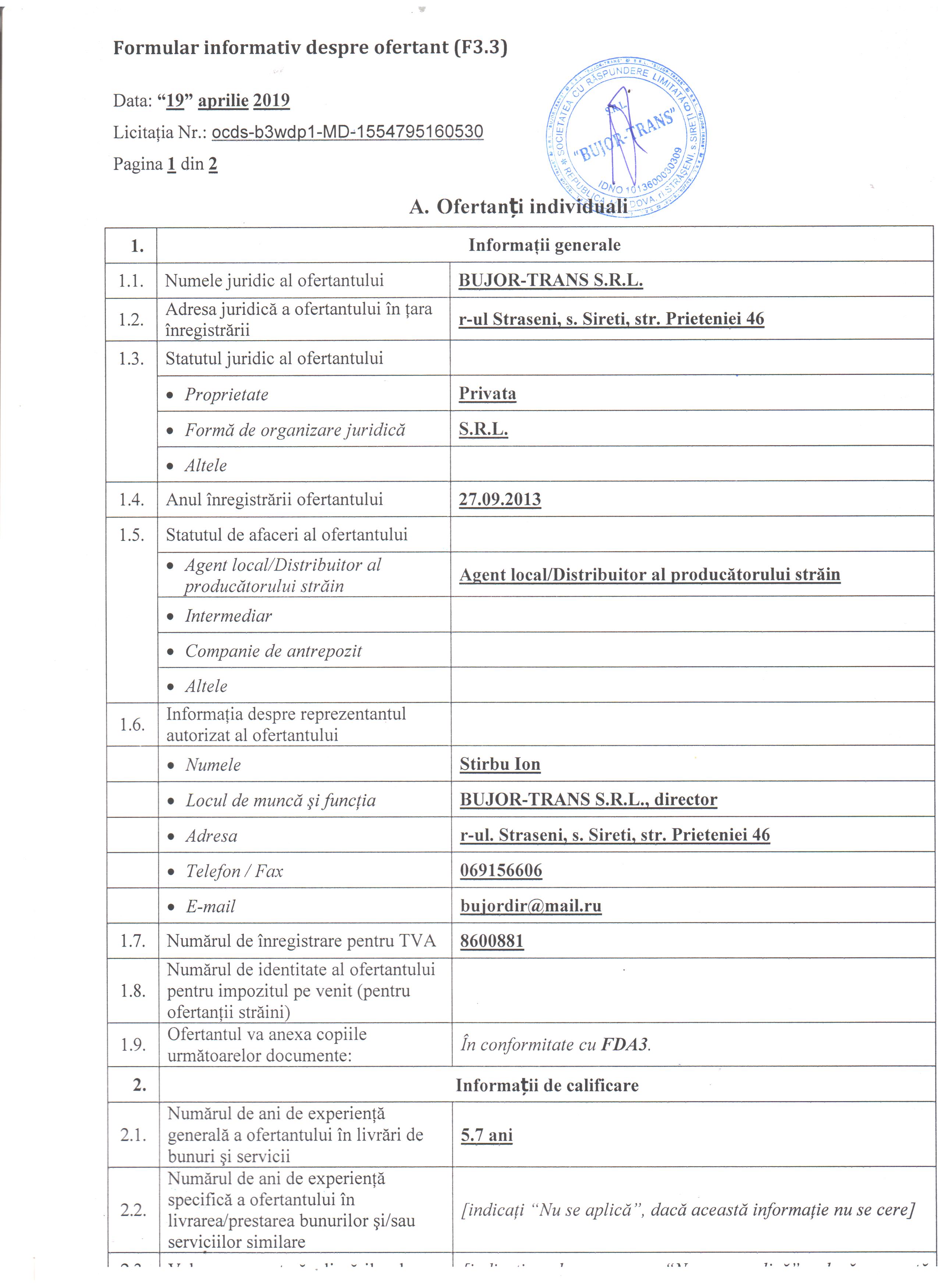 | 22/04/2019 00:00 | Act confirmativ (contract) ce a avut ca obiect livrarea bunurilor similare.jpg | Doc. de calificare | Cereale, cartofi, legume, fructe și fructe cu coajă | | Romana |