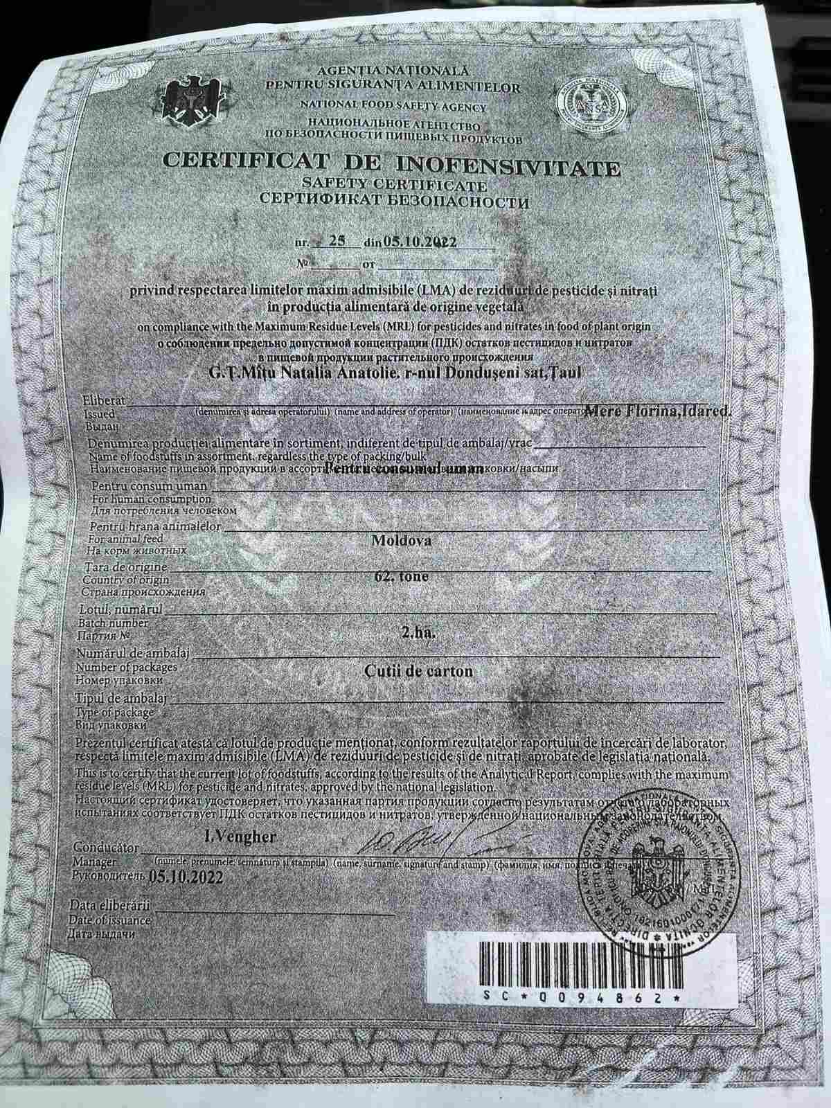 | 16/12/2022 11:25 | certificat stoc faina.semnat.pdf | Propunere financiară | Legume si fructe | - | Romana |