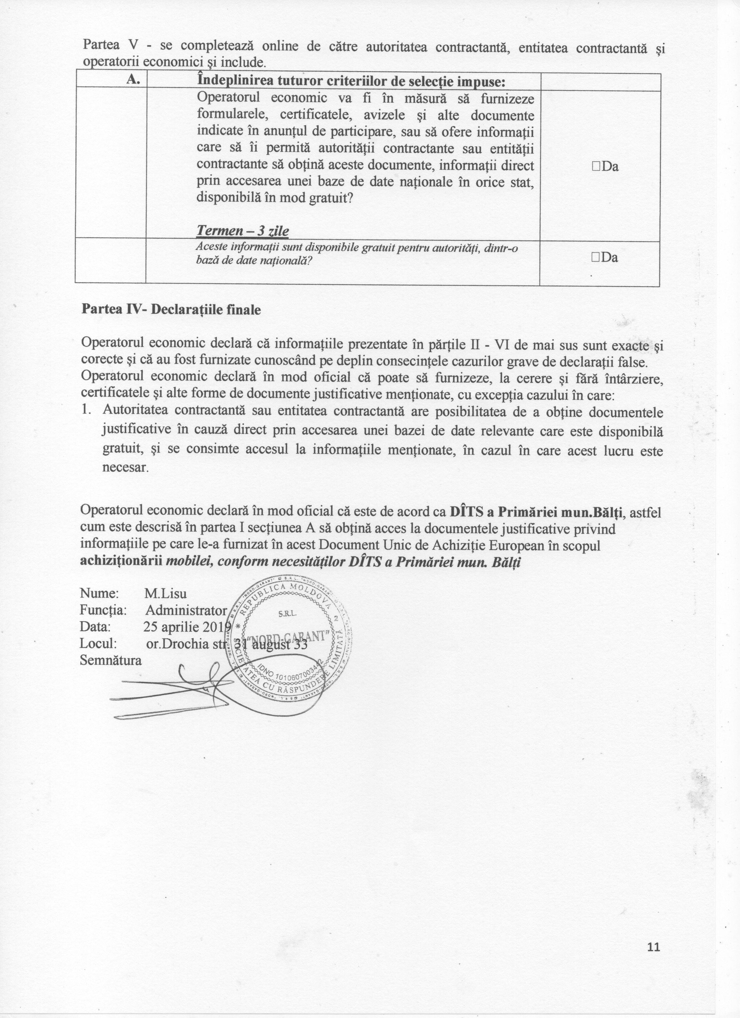 | 26/04/2019 10:00 | рисунок (13).jpg | Doc. de eligibilitate (DUAE) | Lotul Nr.18Instituția preșcolară nr. 6Stelaj | | Romana |
