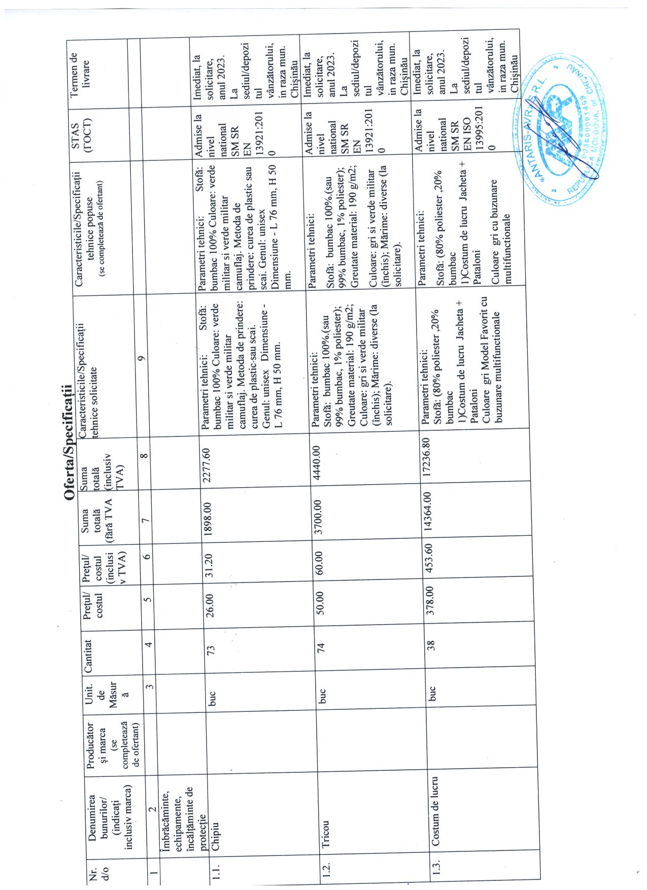| 08/03/2023 15:49 | oferta pag3.jpg | Propunere financiară | Îmbrăcăminte, echipamente, încălțăminte de protecție | - | Romana |