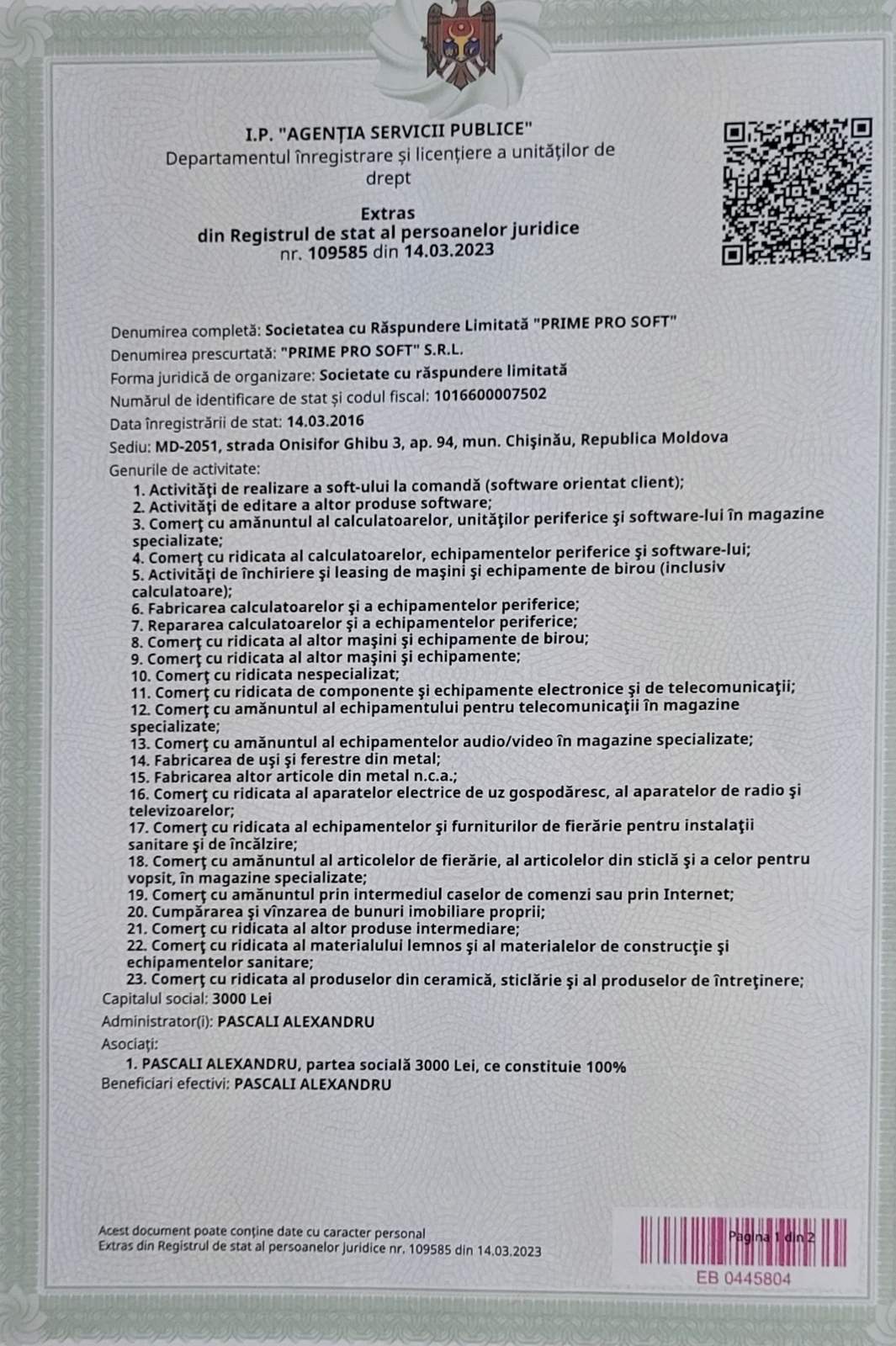 | 24/03/2023 15:30 | certif prime.pdf | Doc. de eligibilitate (DUAE) | Sistem de securitate | - | Romana |