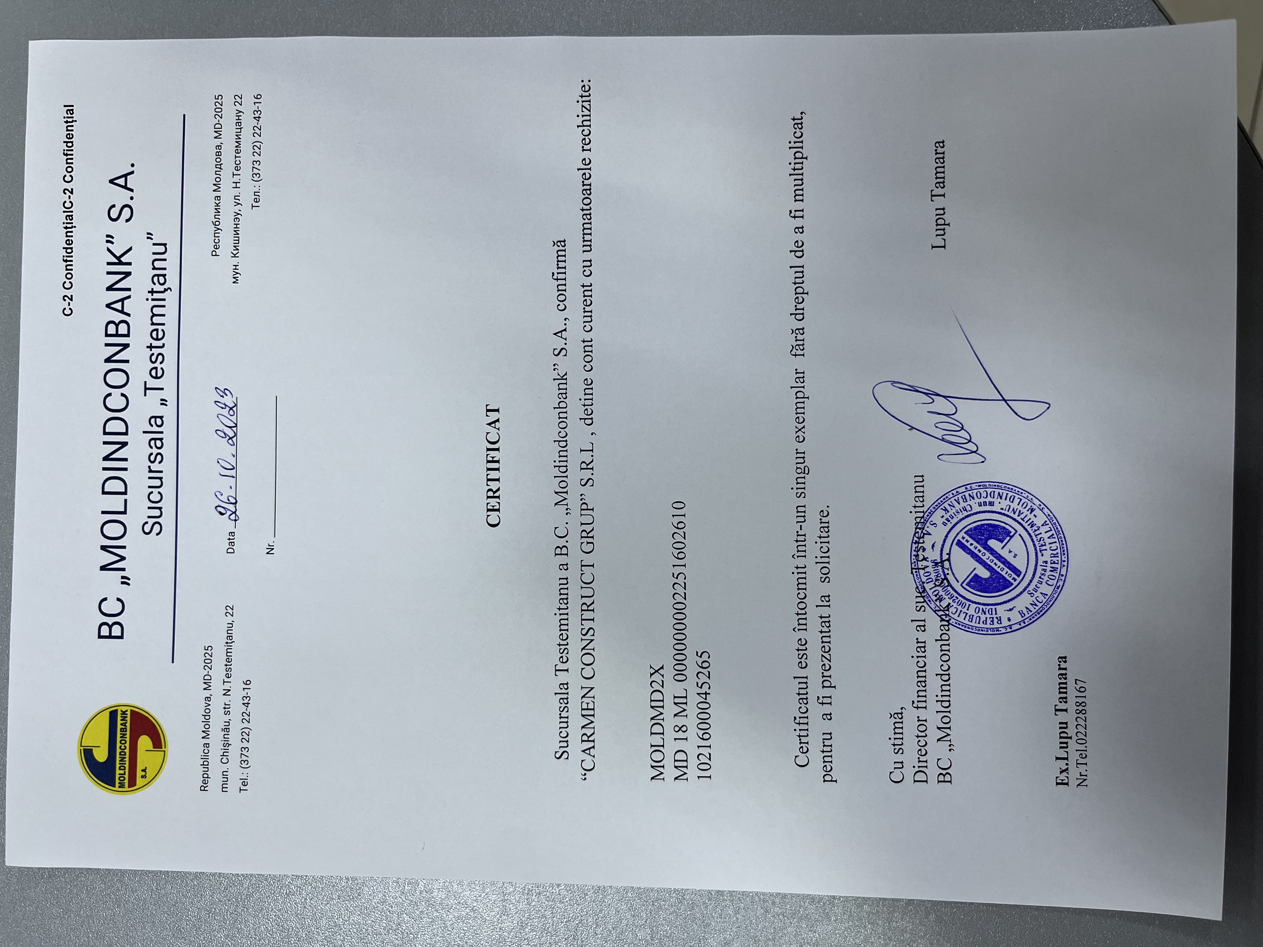 | 27/10/2023 12:00 | certificat inregistr.carmen.signed.pdf | Doc. de eligibilitate (DUAE) | Lucrări de reparație capitală și iluminare interioară a clădirii administrative din cadrul STSA Ungheni/Nisporeni/Călărași (Oficiul Nisporeni) | - | Romana |