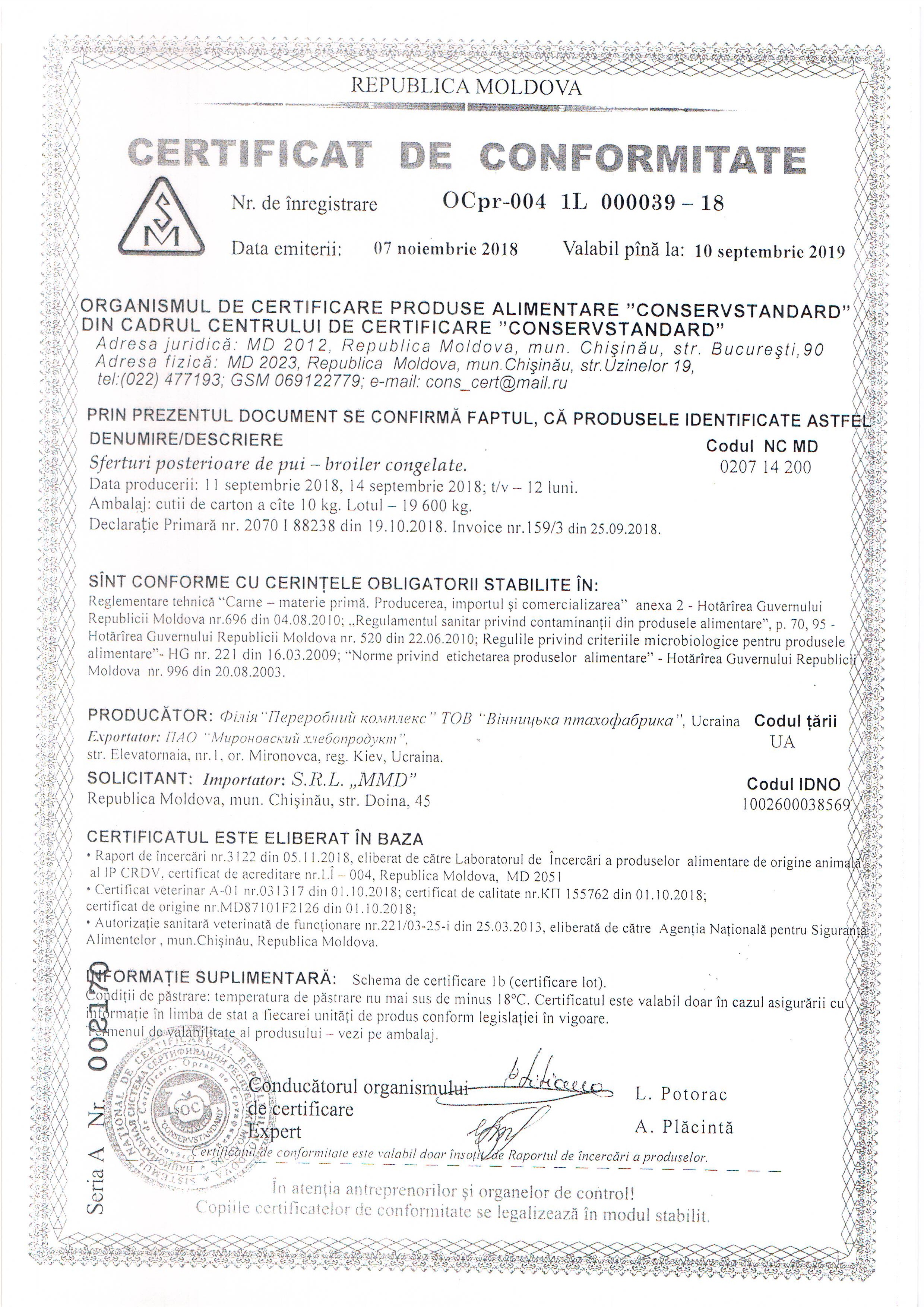 | 19/06/2019 14:56 | pulpe certificat.jpg | Garanții | Produse de origine animală, carne şi produse din carne | | Romana |