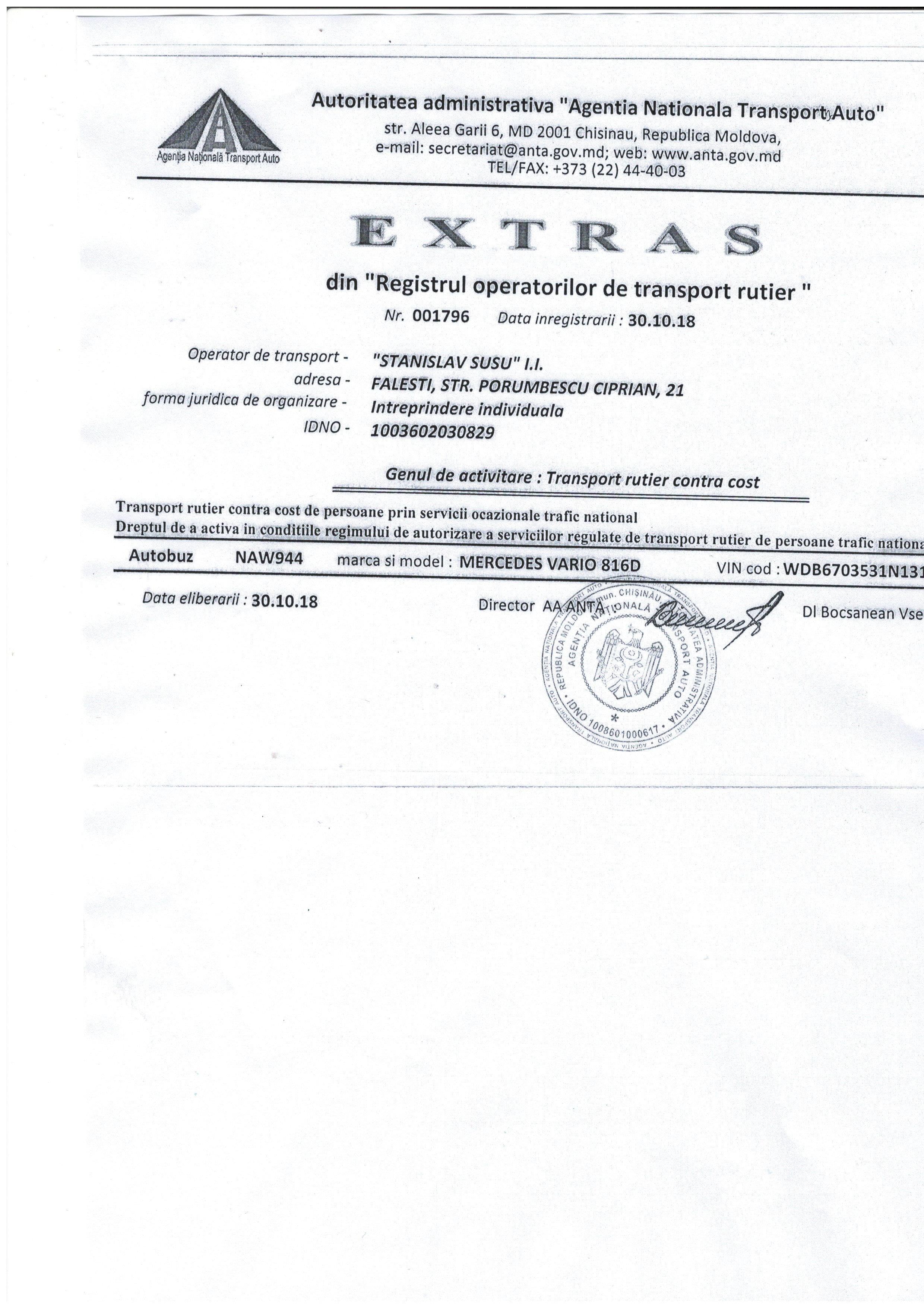 | 26/12/2024 15:00 | cerificat de inmatriculare 944.pdf | Doc. de eligibilitate (DUAE) | Servicii de transport rutier specializat de pasageri, dest. s.Soltoaia, s.Făgădău | -CERTIFICAT DE INMATRICULARE | Romana |