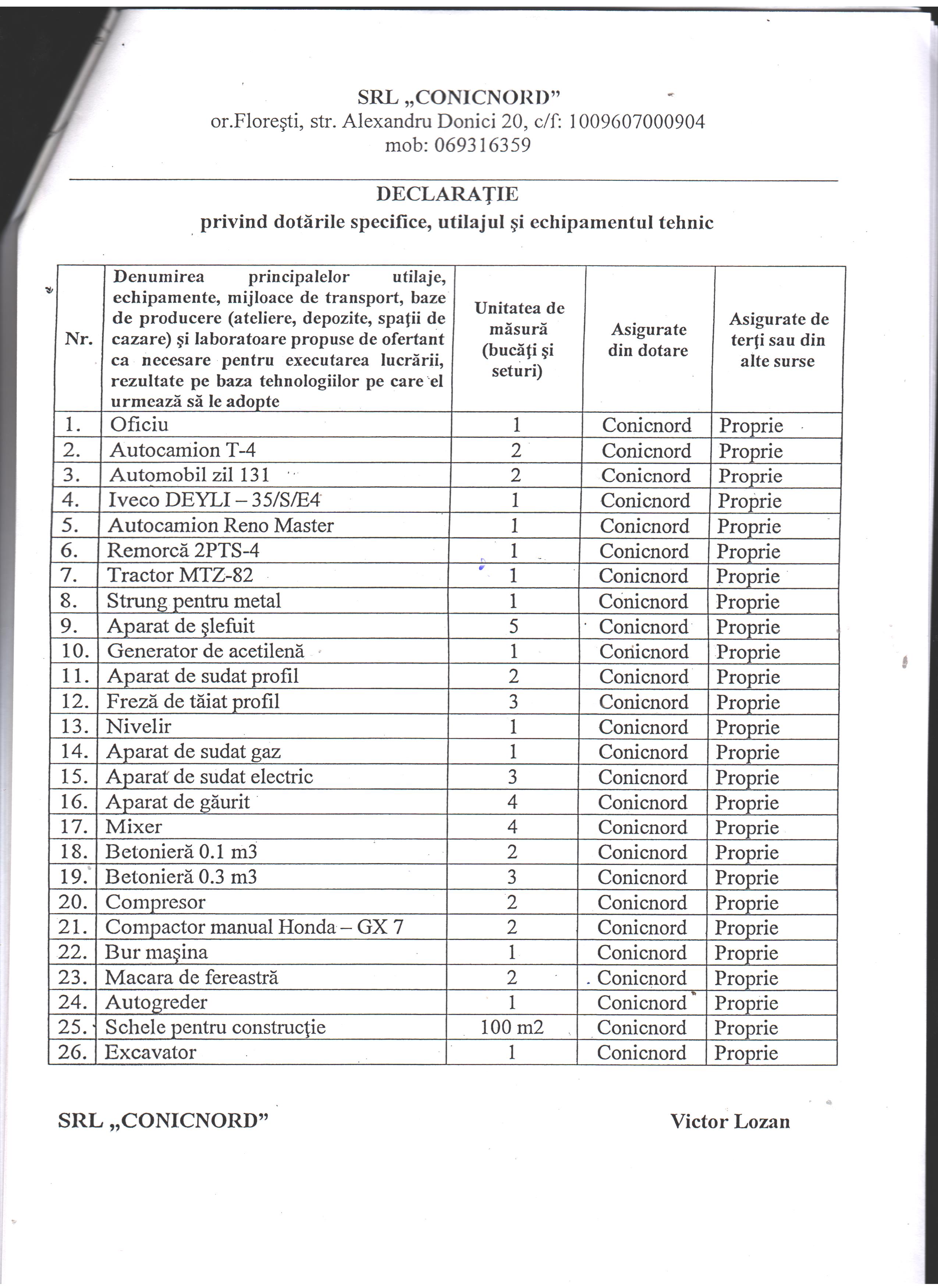 | 16/07/2019 08:52 | declaratiile privind dotarile spicifice.jpg | Doc. de eligibilitate (DUAE) | Amenajarea construcției provizorie pentru lichidarea calamităților naturale în s. Gura Căinarului, r-l Florești | | Romana |