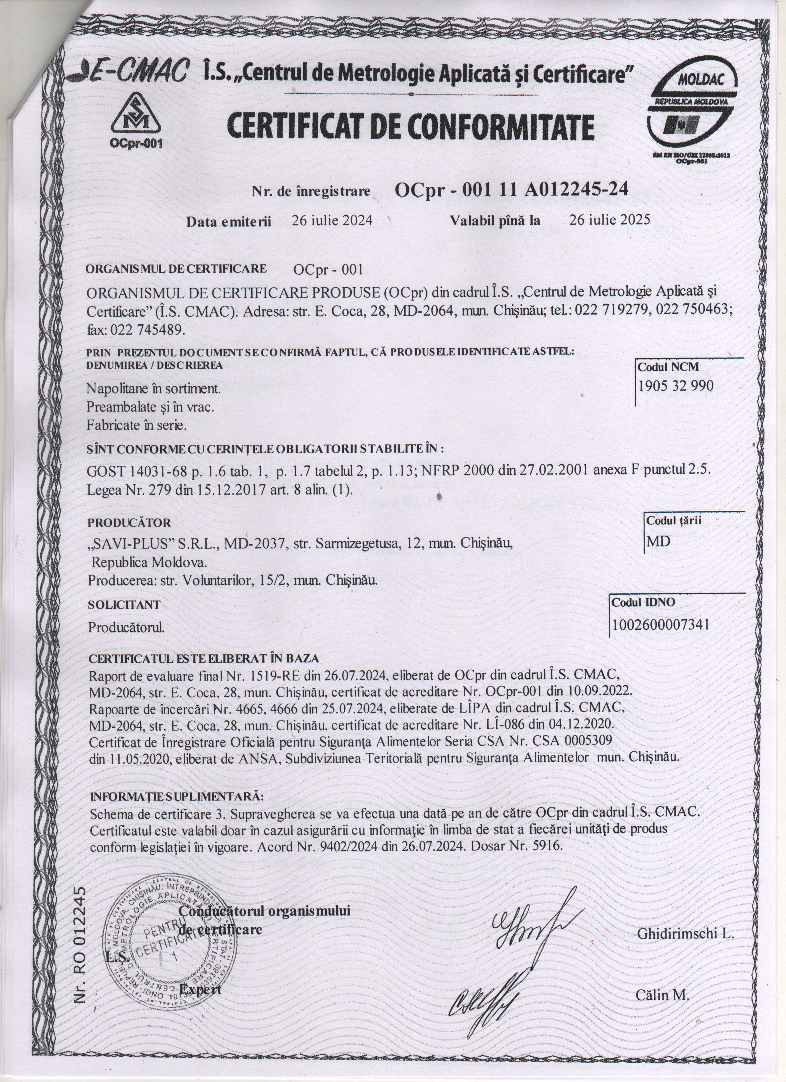 | 28/05/2025 15:43 | napolitane savi plus.jpg | Garanții | Lotul 19 Produse de patiserie | - | Romana |