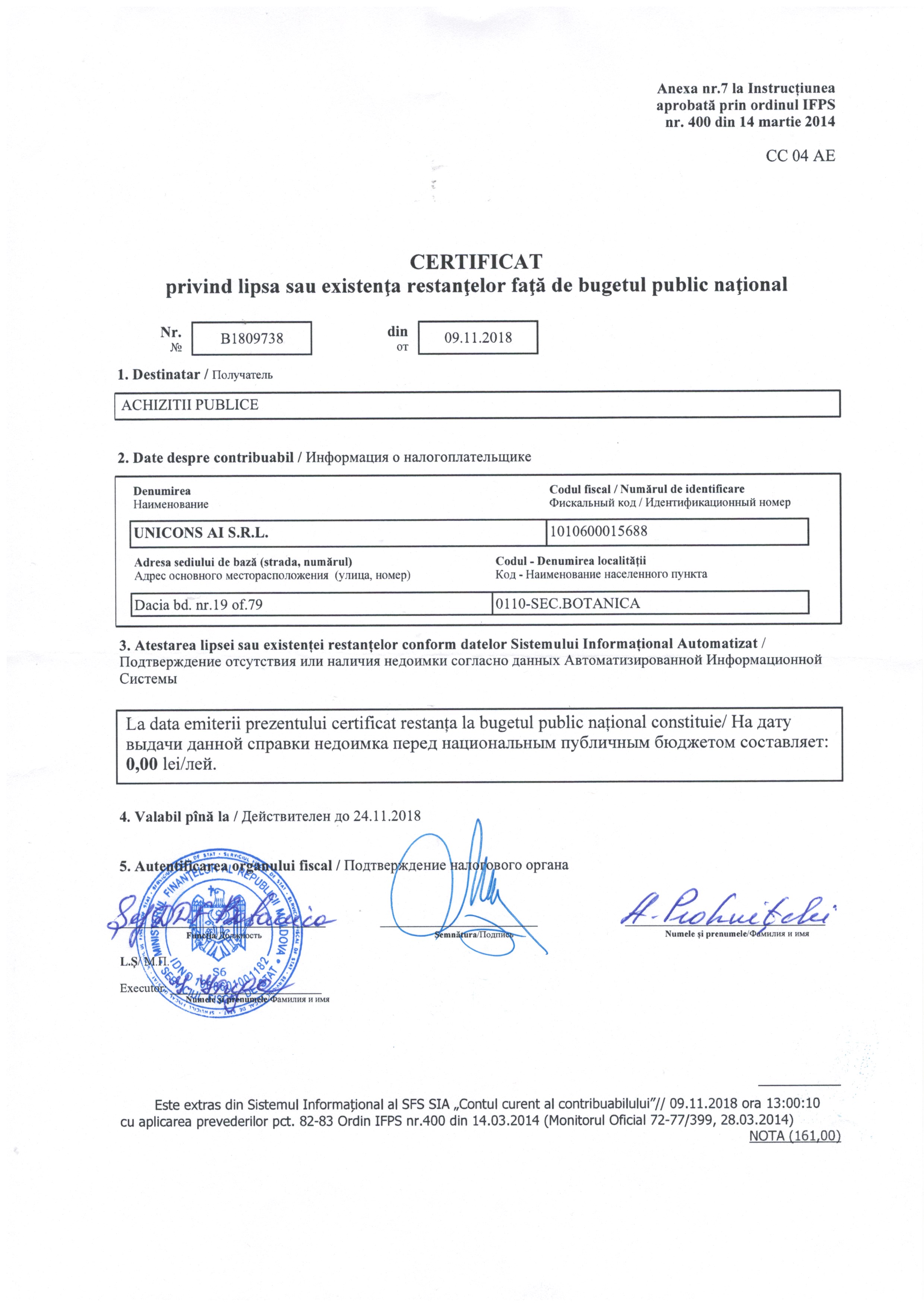 | 21/11/2018 20:00 | certificat lipsa datorii 24.11.2018.jpg | Garanții | reparatia capitala a acoperisului | | Romana |
