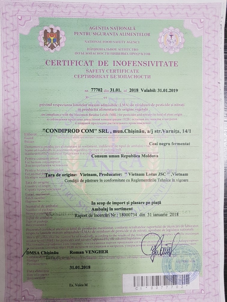 | 19/12/2018 12:00 | чай condiprod srl.jpg | Garanții | Diverse produse alimentare | | Romana |