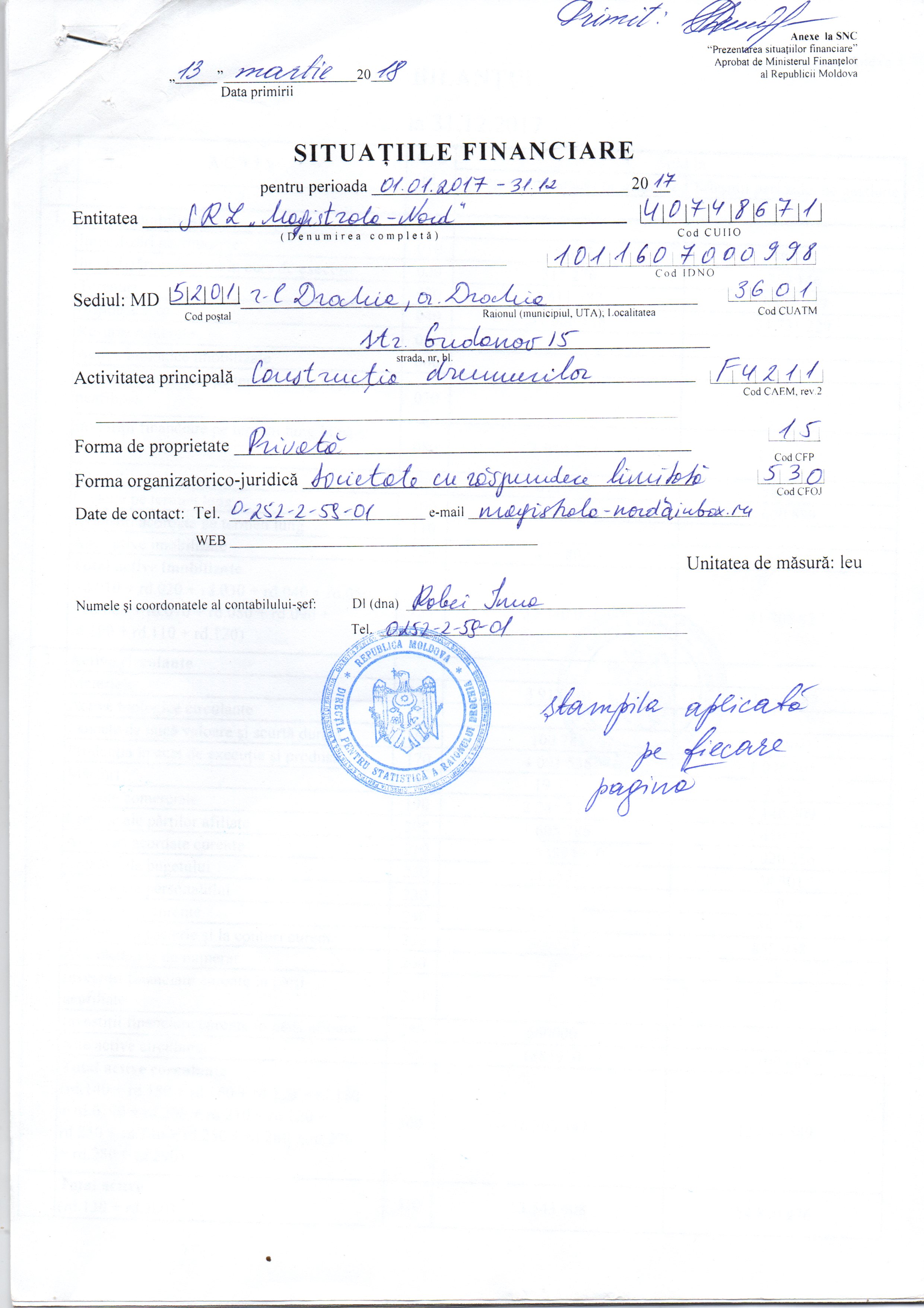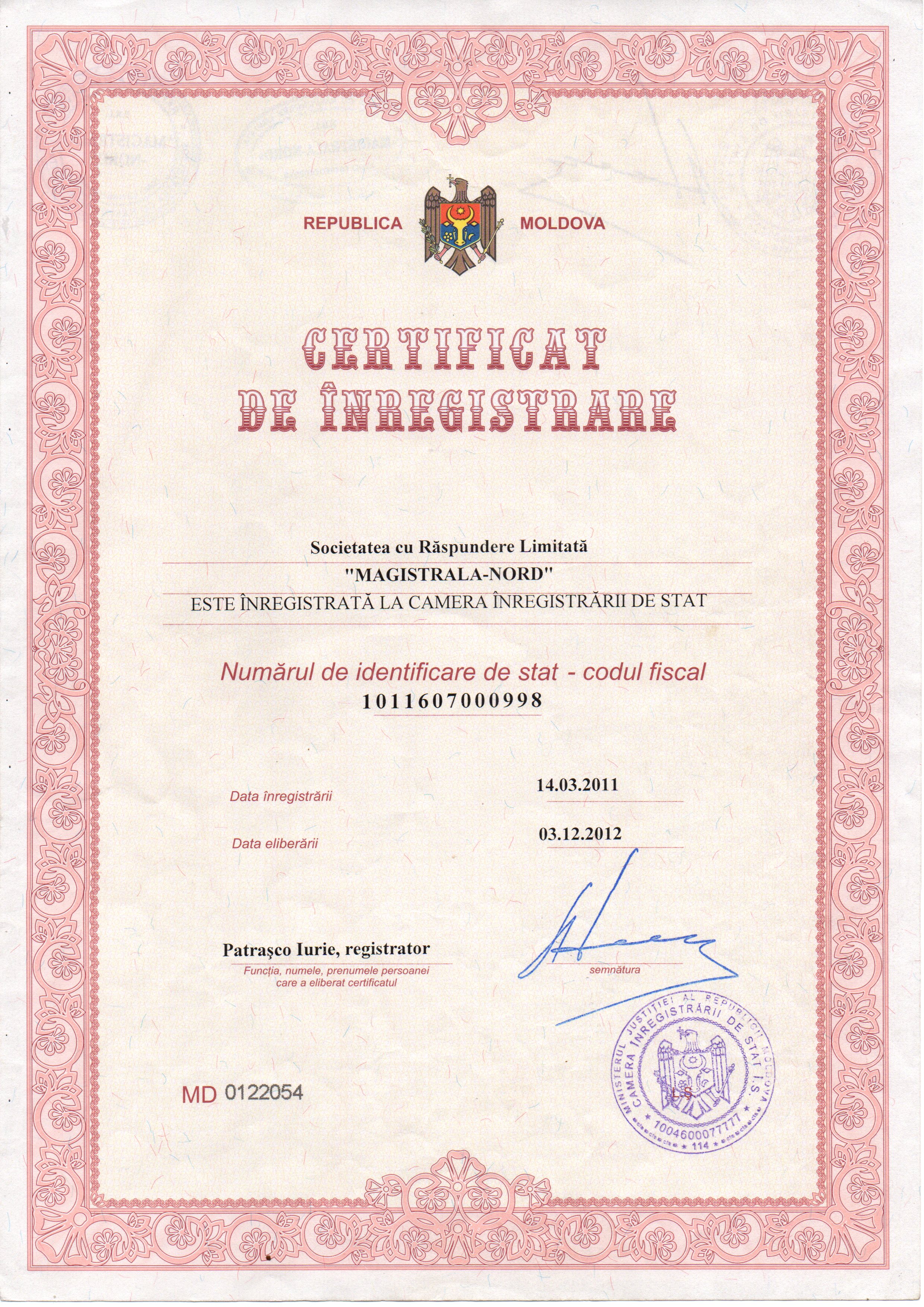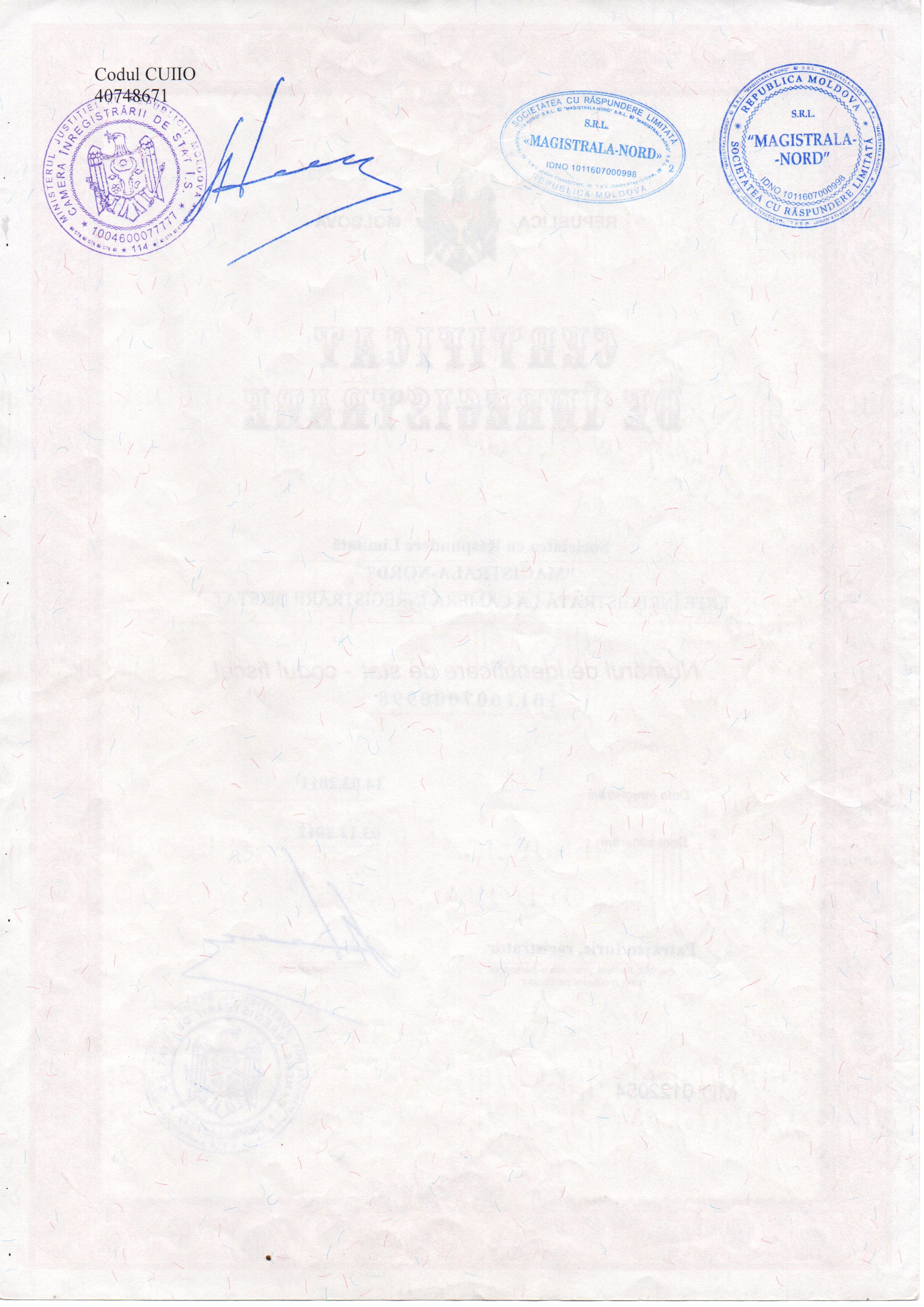 | 22/11/2018 14:00 | certificat de inregistrare pagina 2.jpg | Garanții | Întreţinerea pe timp de iarnă a drumurilor publice locale pe anul 2019 din raionul Drochia | | Romana |
